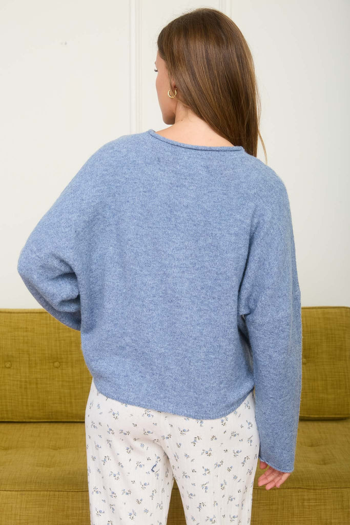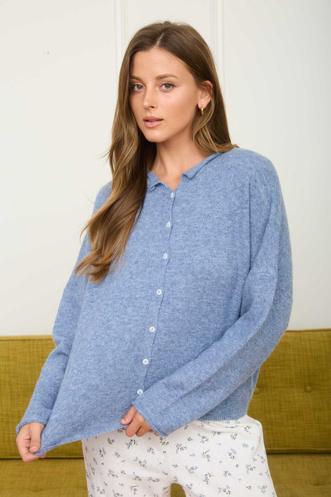 decked in delight button down knit cardigan | dusty blue